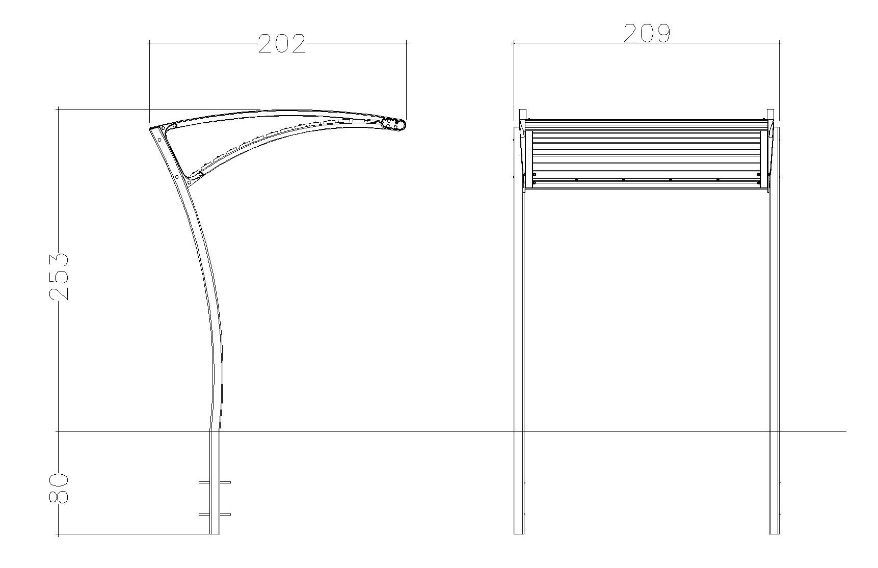 פרגולה מדגם “גל ים” מורכבת ממתכת ועץ. סוכך העץ מורכב מ- 17 לוחות עץ, מחוזק בפרופיל וצלעות מתכת, עמודי הפרגולה מיוצרים מפרופילי מתכת. כל חלקי המתכת צבועים בצבע דו רכיבי. מגיעה במידות 209X202 ס”מ ובגובה 253 ס”מ. הפרגולה מסופקת בחלקים להרכבה עצמית. התקנה: עמודי הפרגולה מבוטנים לקרקע