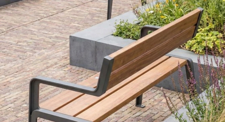 ספסל מדגם “יותם” עשוי ממתכת מגולוונת ועץ, צבועה בצבע אלקטרוסטטי דו-שכבתי. מותאם לת”י נגישות 1918.