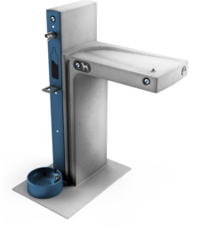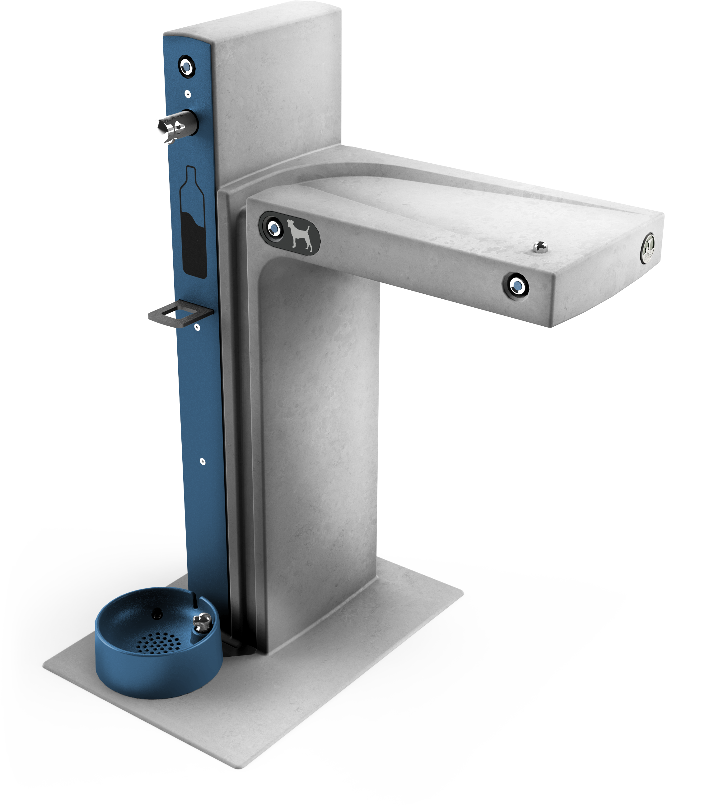 ברזיית אשד עם שוקת לכלבים מבטון בעלת שני לחצנים, ברז לשתיה וברז למילוי בקבוקים הכולל מדף להנחת בקבוק עשוי. לברזיה גם פס ניגודי מאלומיניום צבוע ושוקת מים לכלבים מאלומיניום צבוע הכולל חורי ניקוז.